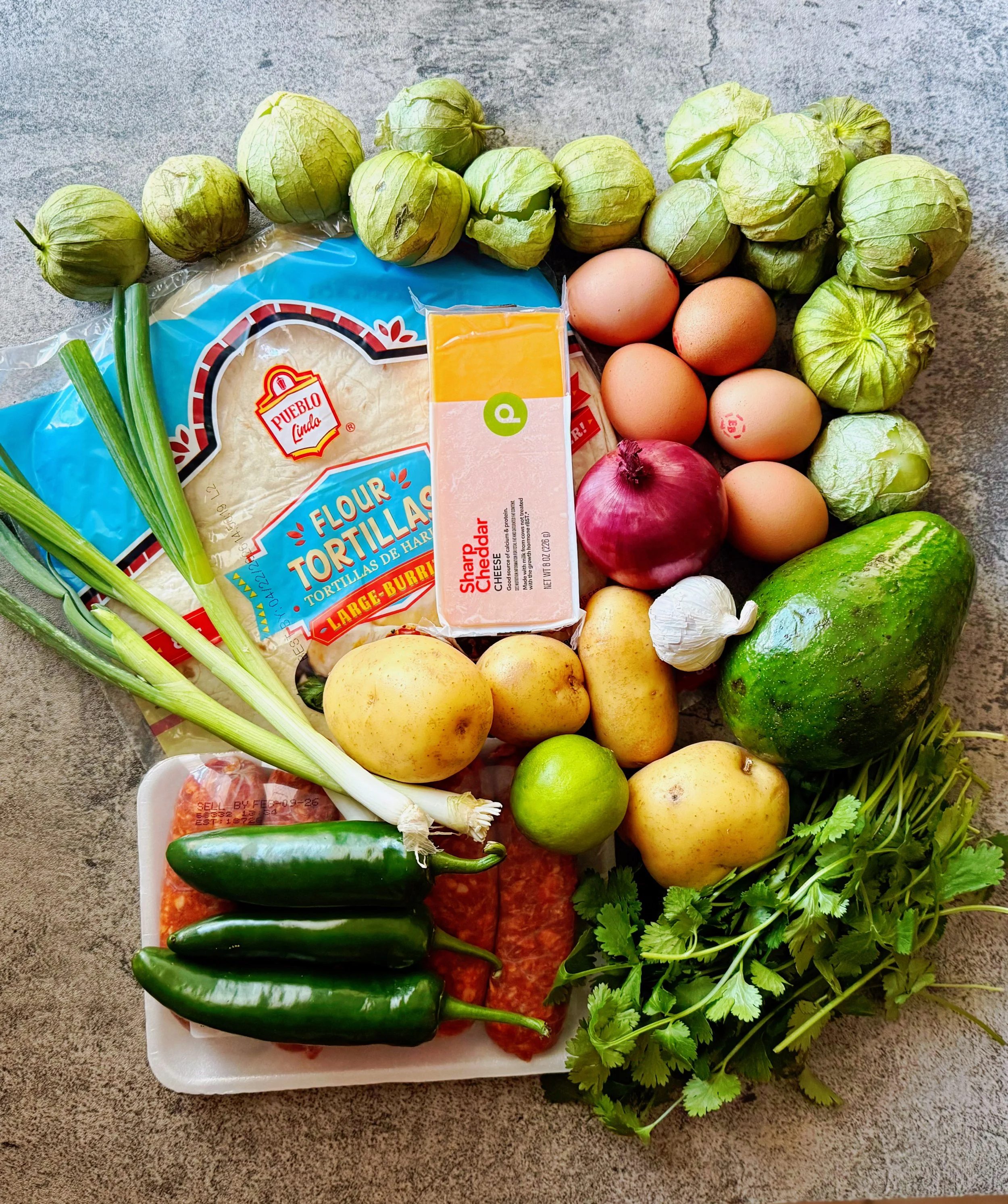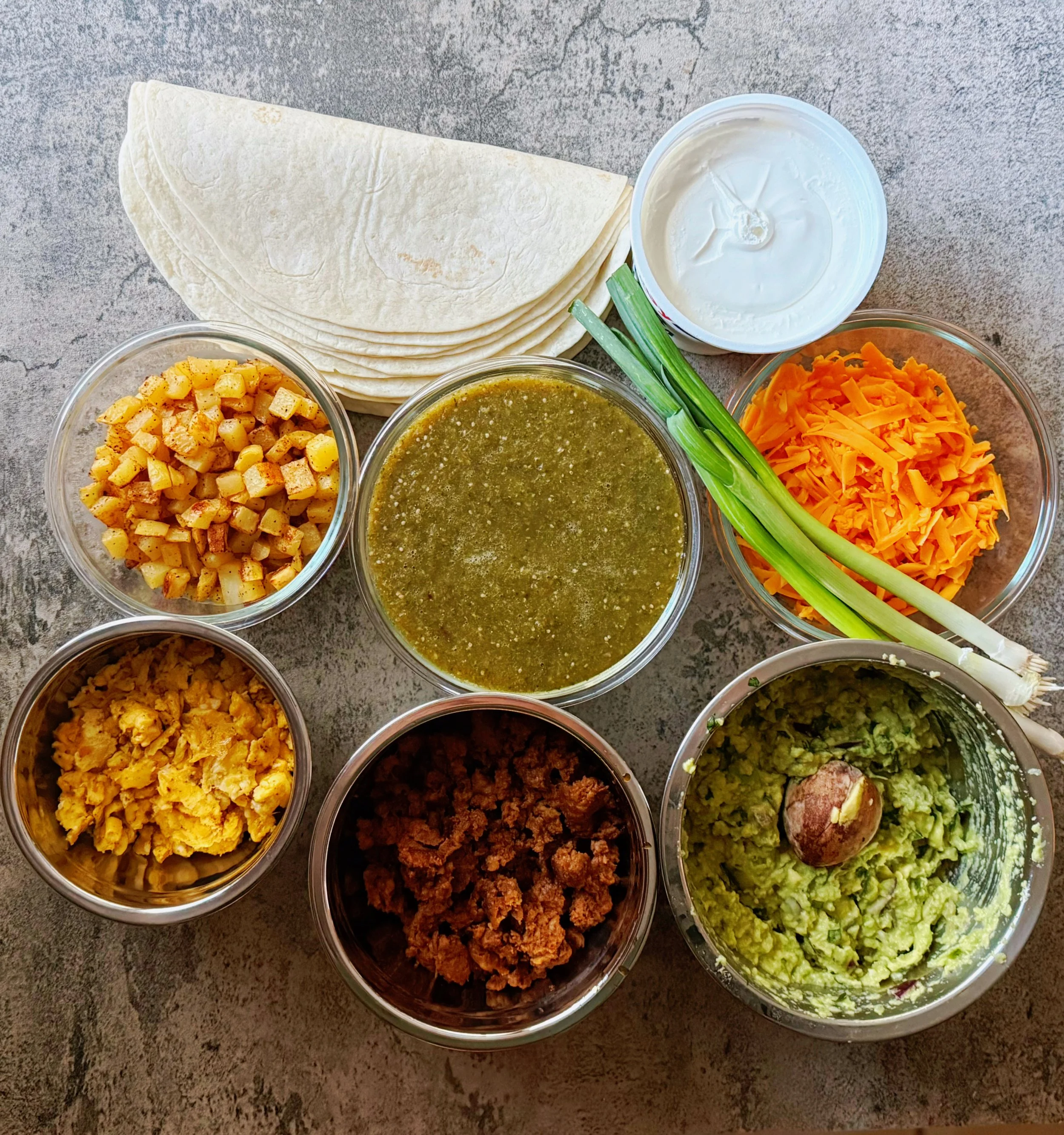 Salsa verde is a vibrant green sauce traditionally made from tomatillos, fresh herbs like cilantro, chili peppers, garlic, and lime juice creating a bright balance of tangy, fresh, and slightly spicy flavors. Unlike red salsas made from tomatoes, tomatillos give salsa verde its signature tartness and slightly citrusy edge, which helps cut through richer ingredients like chorizo, cheese, and eggs. In this recipe it adds freshness and contrast bringing acidity and herbal brightness that keeps the breakfast burritos from feeling too heavy while tying all the flavors together.