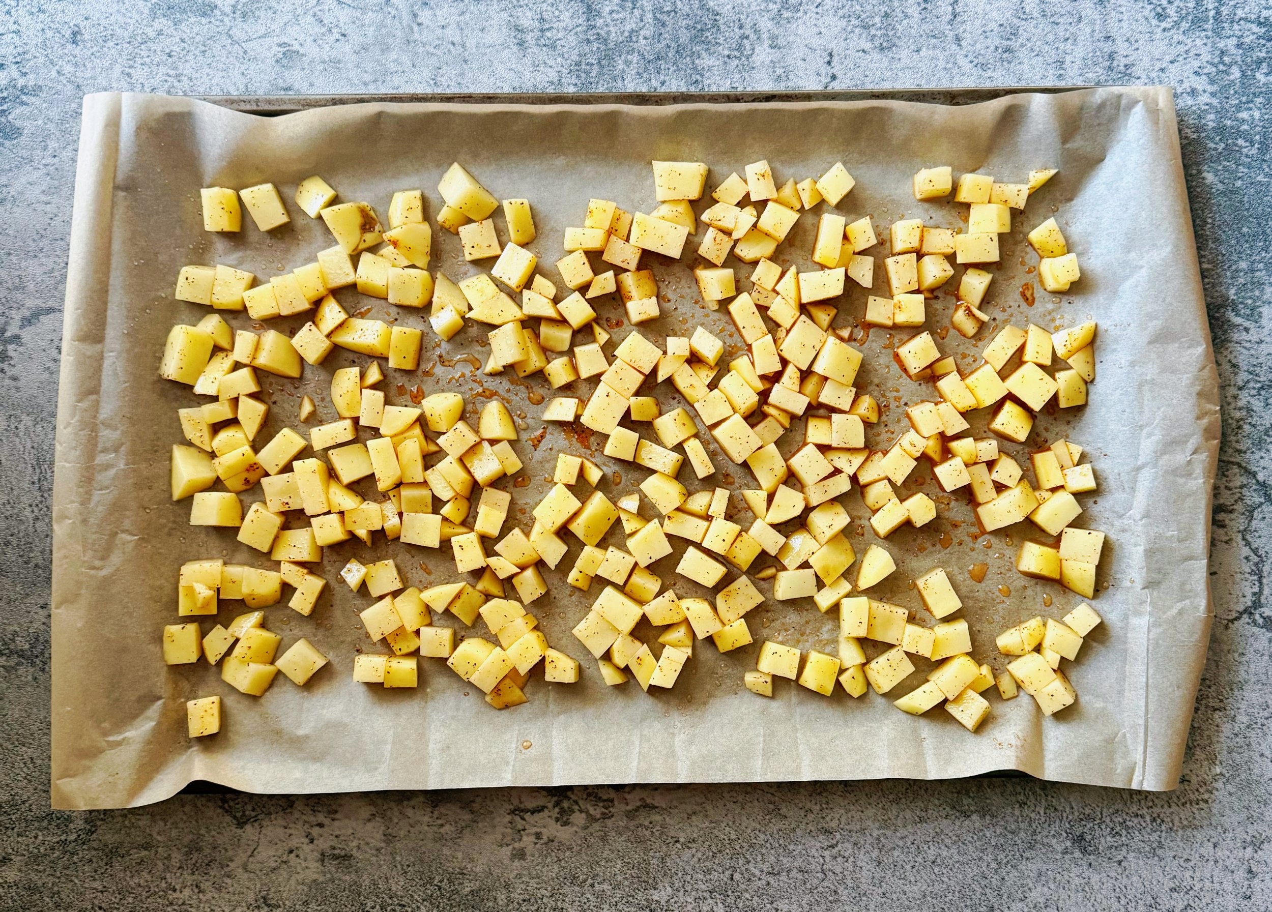 Don’t over crowd the pan when cooking the potatoes or they steam instead of crisp.
