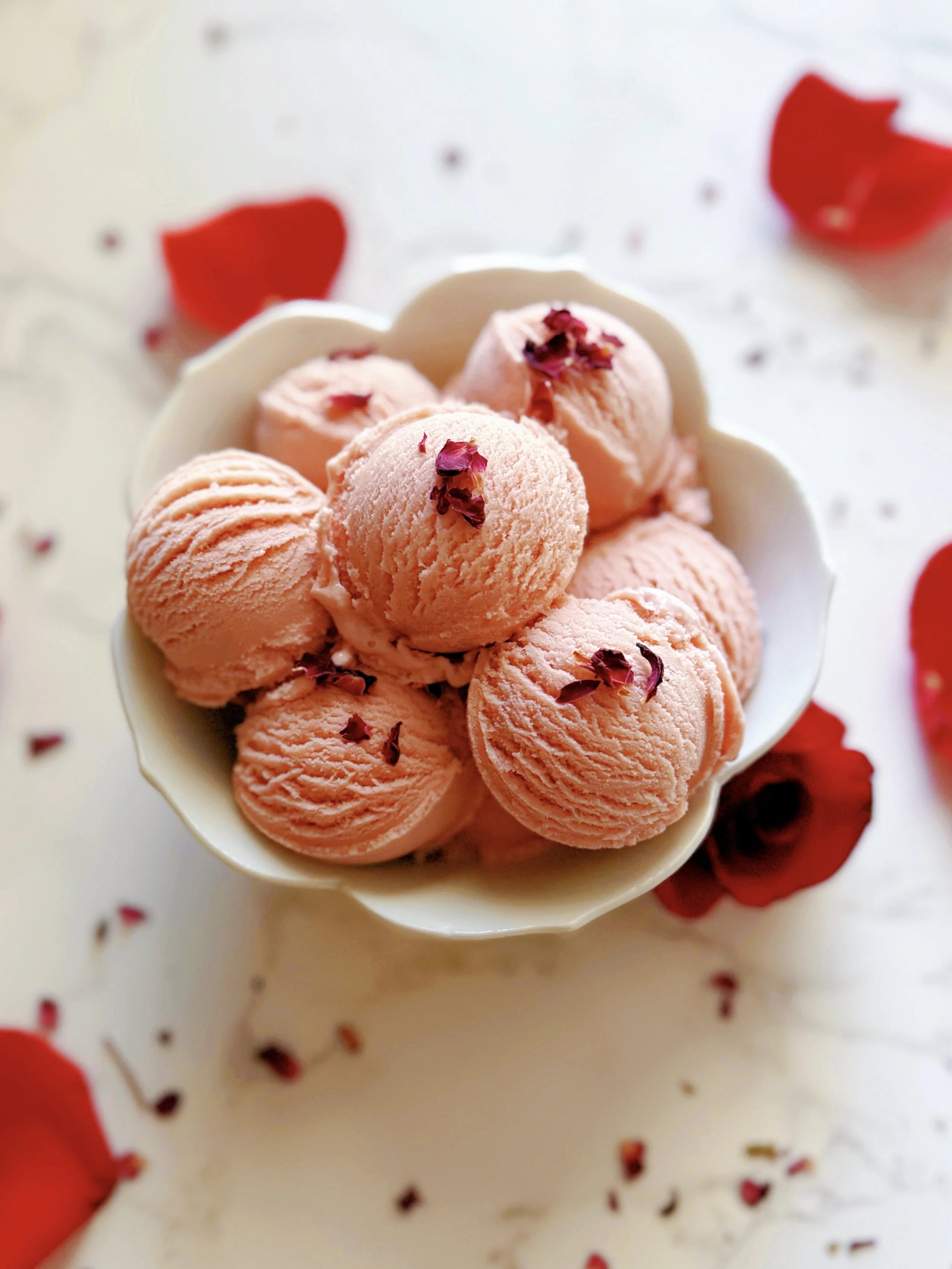 Rose gelato makes an ideal date night dessert because it feels thoughtful and elevated without being heavy or overly complicated. The floral notes add a sense of romance and novelty while the milk forward custard keeps the texture smooth, light, and easy to enjoy after a full meal. Unlike richer desserts that feel overwhelming rose gelato offers a delicate balance of sweetness and aroma that encourages slowing down and savoring the moment; turning dessert into something intimate, sensory, and quietly memorable.