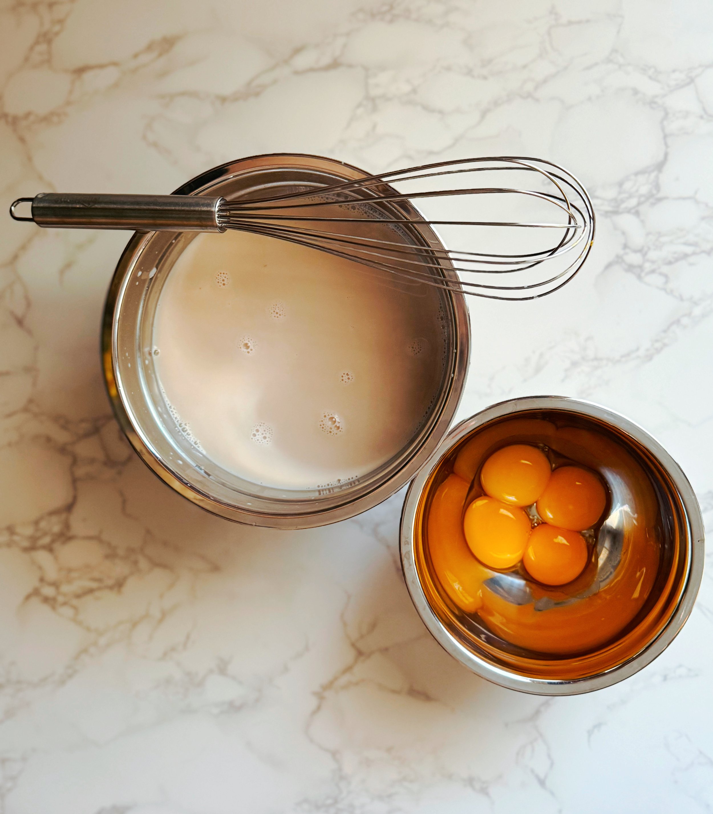 When tempering the egg yolks pour the hot liquid in a small stream while constantly whisking to prevent them from scrambling. If poured too fast the yolks will end up chunky and scrambled instead of smooth.