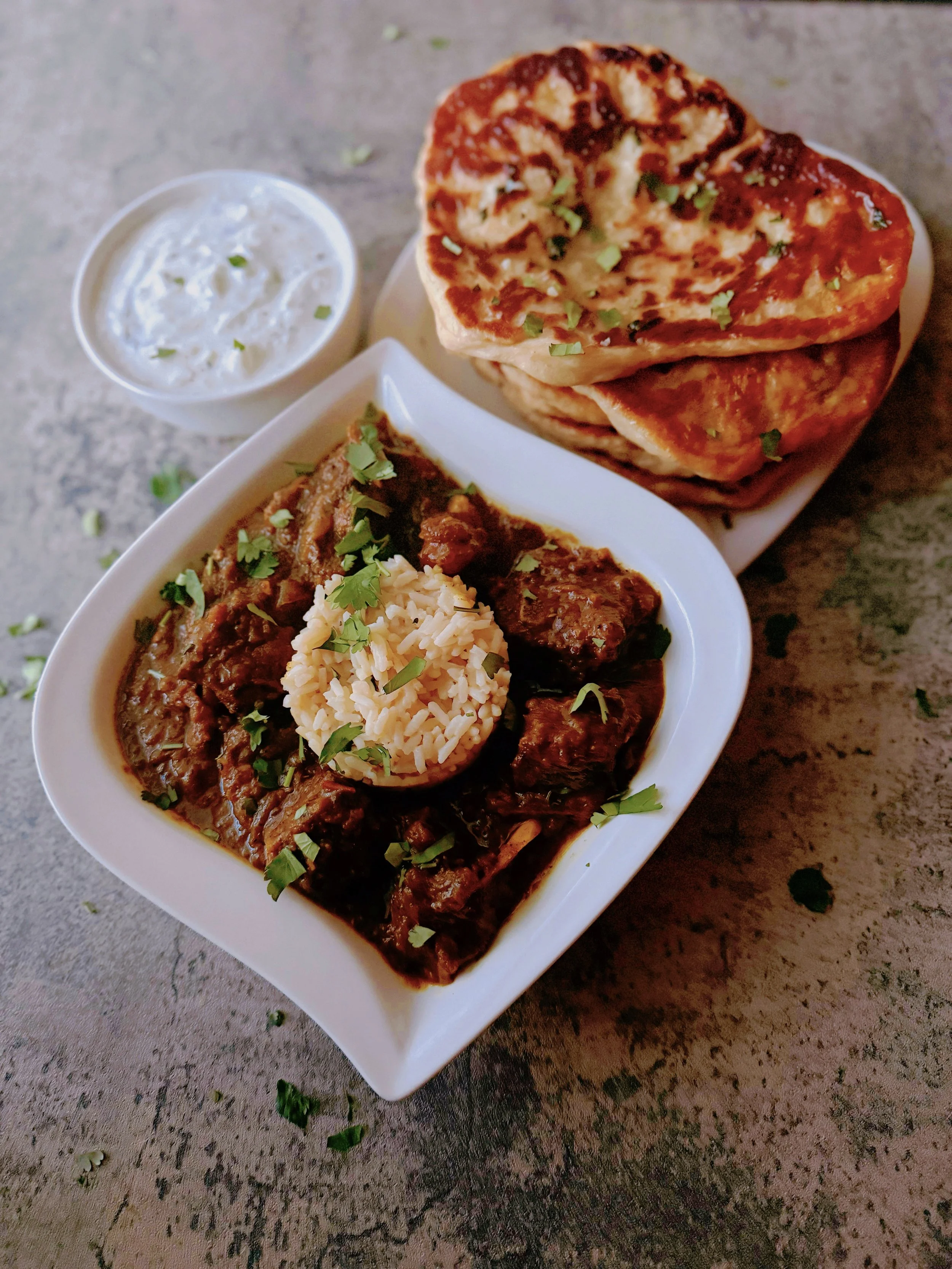 mango curry goat with naan and raita